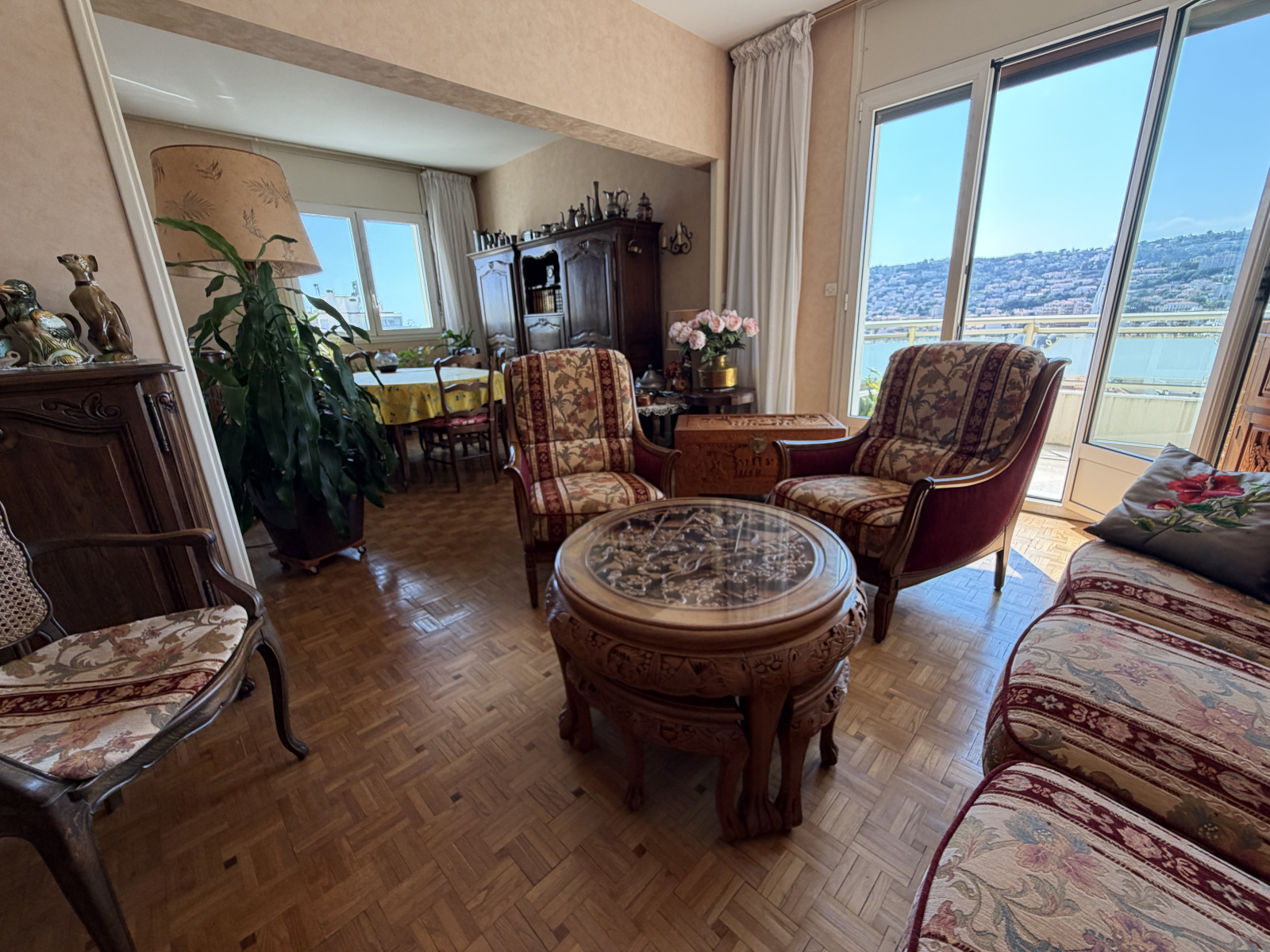 Au 4ᵉ et avant dernier étage avec ascenseur, d'une résidence de standing bien habitée et entretenue, cet appartement vous séduira par ses volumes généreux. Il se compose d’un vaste double séjour lumineux s'ouvrant sur une belle terrasse avec vue panoramique sur la ville et les collines, exposée plein ouest. Une première chambre, accompagnée d'un double dressing donne accès à cette même terrasse.