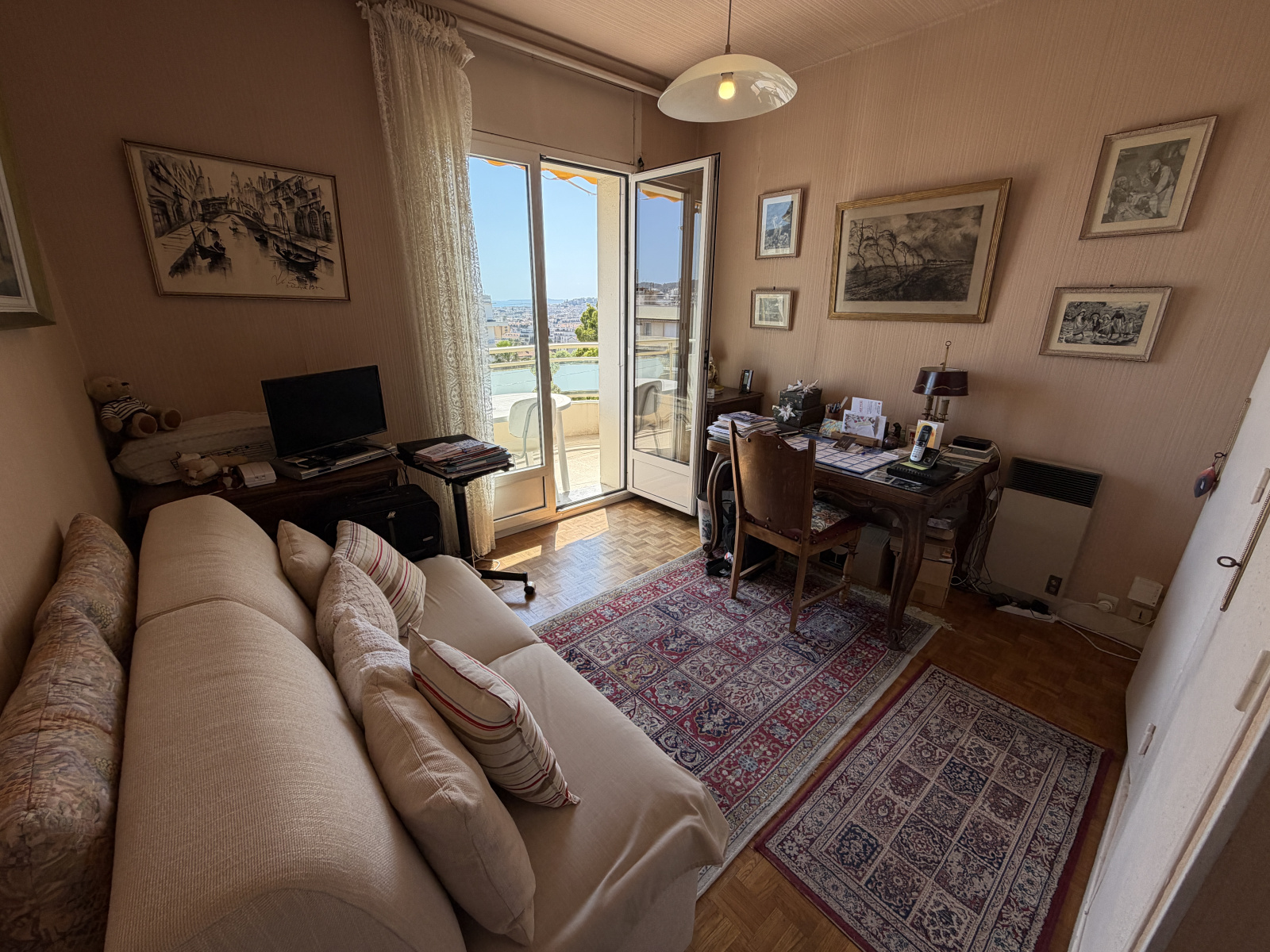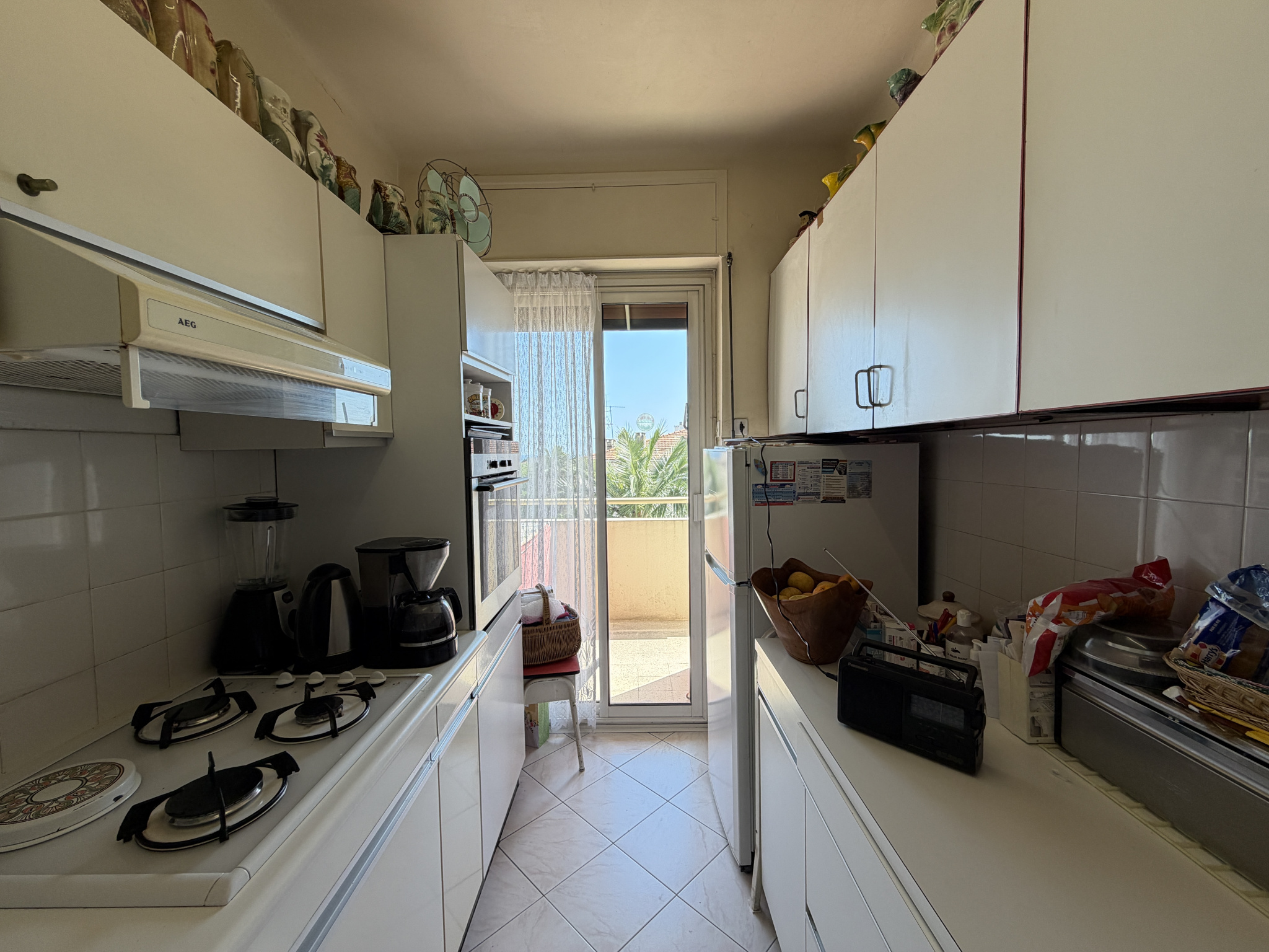 Une cuisine indépendante ainsi qu'une seconde chambre ouvrent sur une nouvelle terrasse exposée plein sud, avec vue sur le Mont Alban, la Colline du Chateau et un apperçu mer.