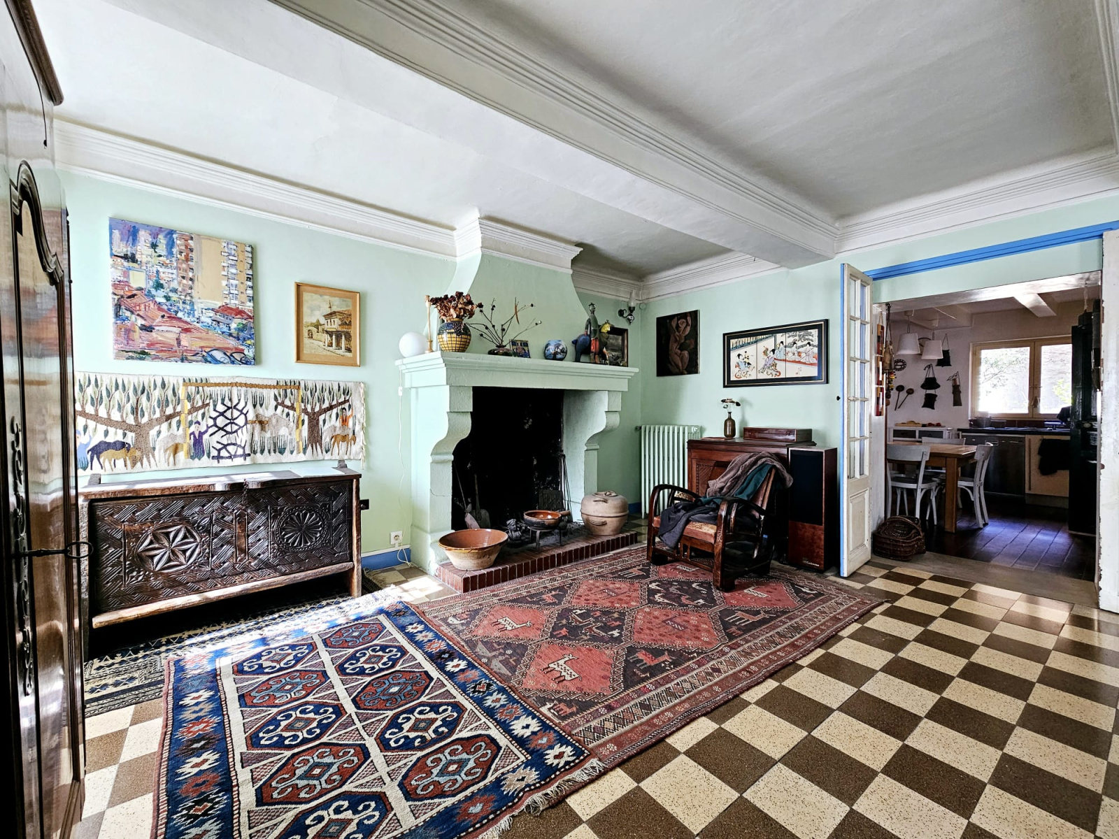Salon avec salle à manger Cheminée Poutres apparentes Exposition Est