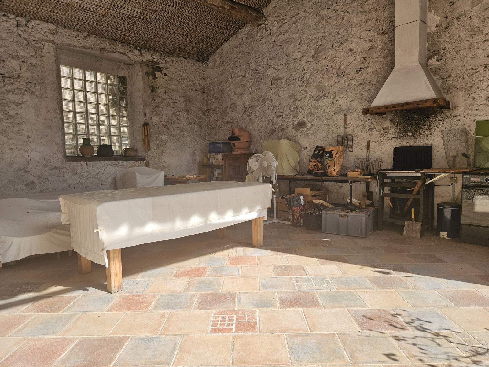 Le premier étage composé, d'une chambre, un WC, un salon/salle à manger avec poutres apparentes et une magnifique cheminée ouverte, ainsi qu'une cuisine séparée aménagée et équipée, avec accès à une grande terrasse comprenant une cuisine d’été, idéale pour profiter du calme et du soleil.